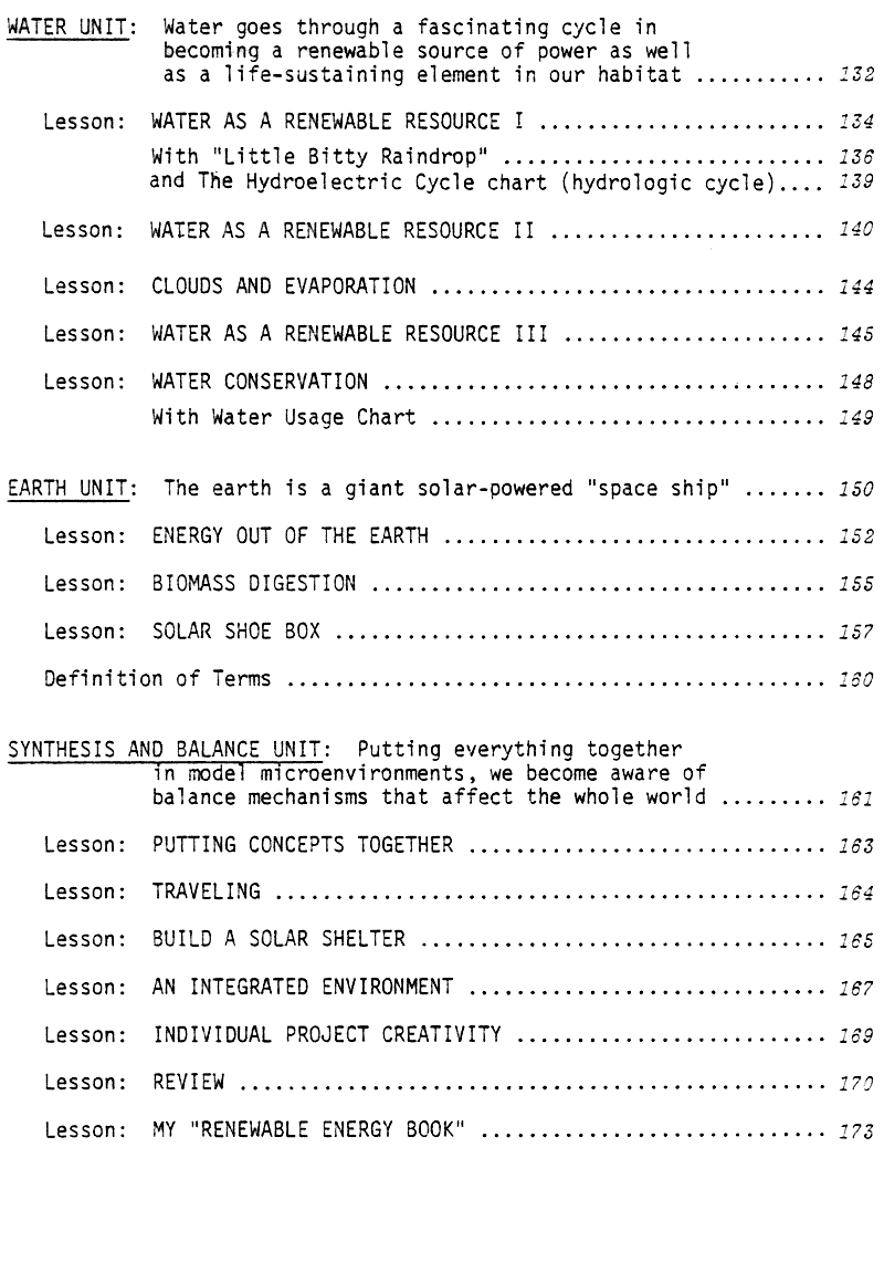 of contents or